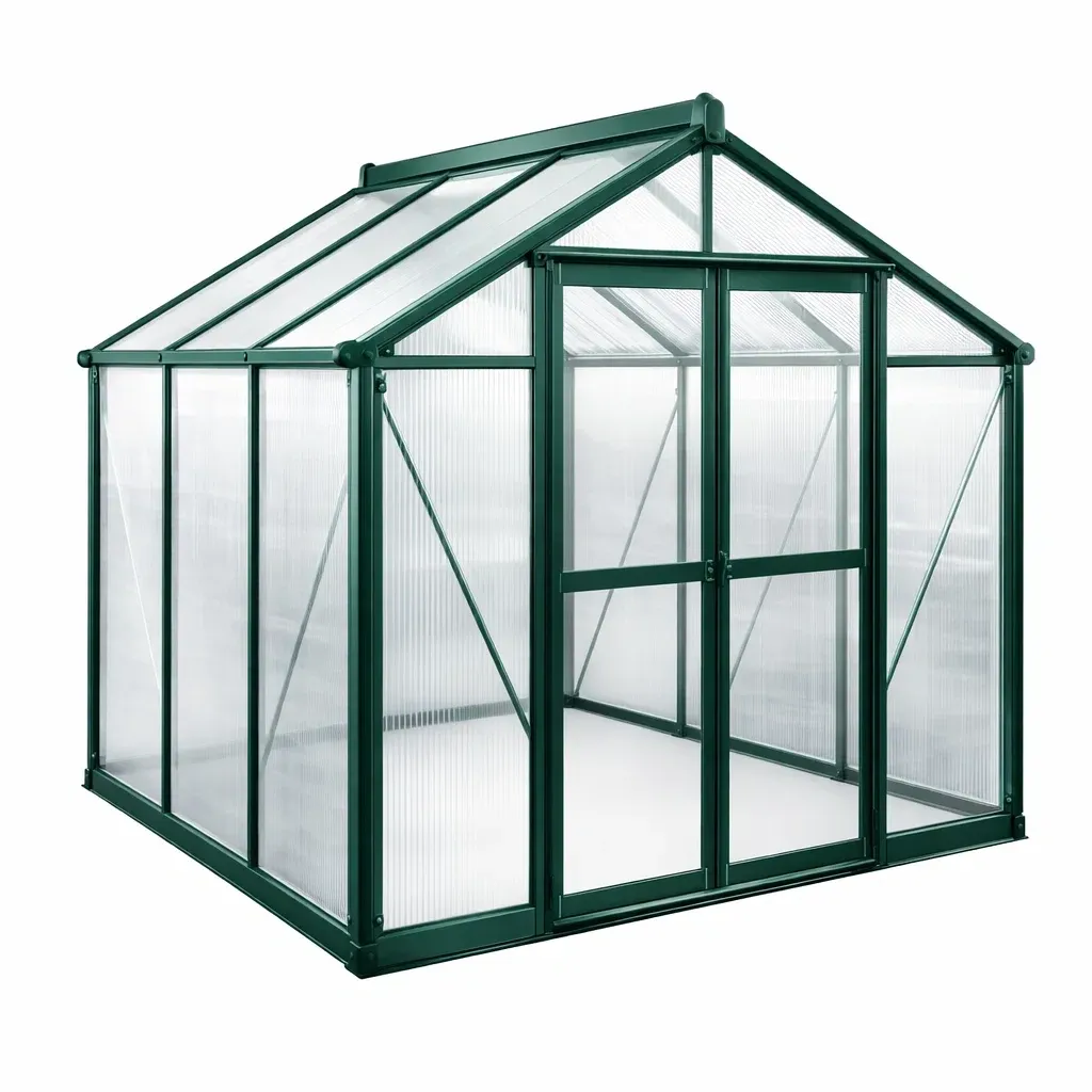 Table carrée en aluminium avec plateau en verre trempé de 5 mm d'épaisseur.