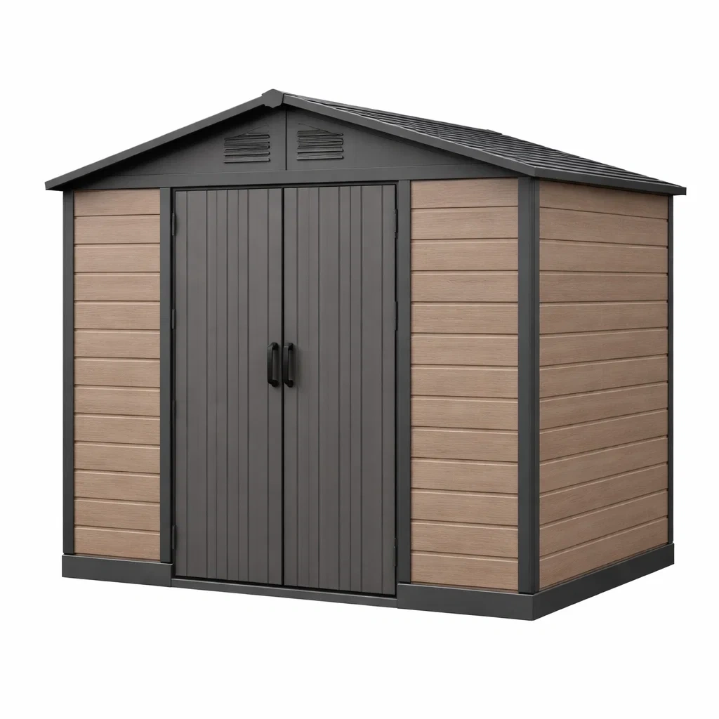 Matériaux : Panneaux composites en bois et résine avec renforts en métal.