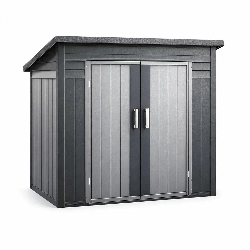 Abri de jardin en plastique polypropylène, résistant aux intempéries. Conçu pour le rangement des outils et équipements de jardin.