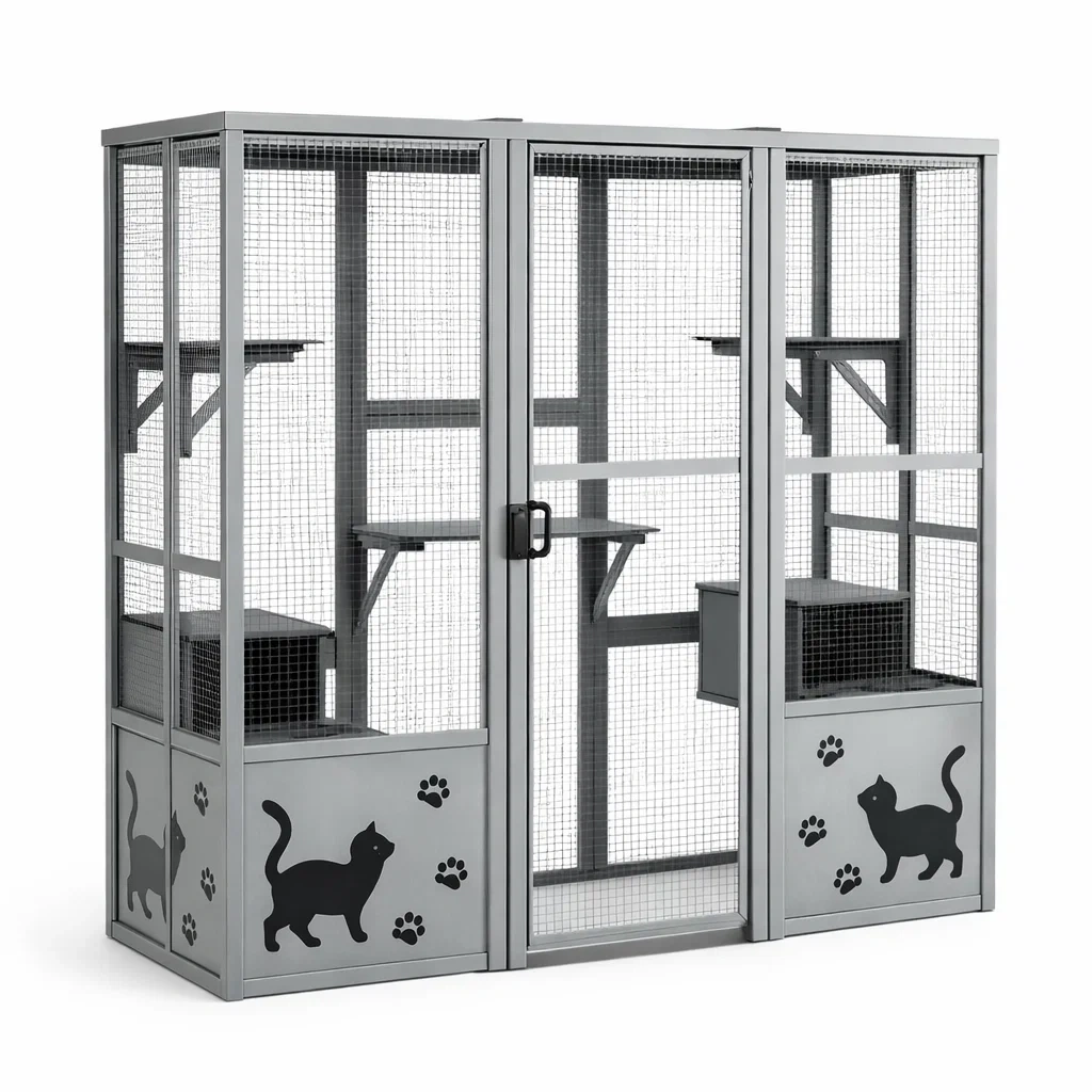 Enclos pour chat en acier avec 3 niveaux gris