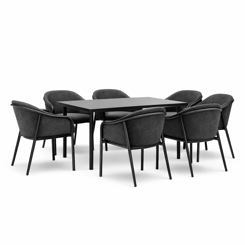 Ensemble de table et chaises rectangulaire en métal et tissu gris