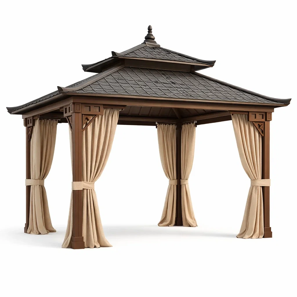 Matériau : Structure en aluminium, rideaux en polyester, toit en acier galvanisé