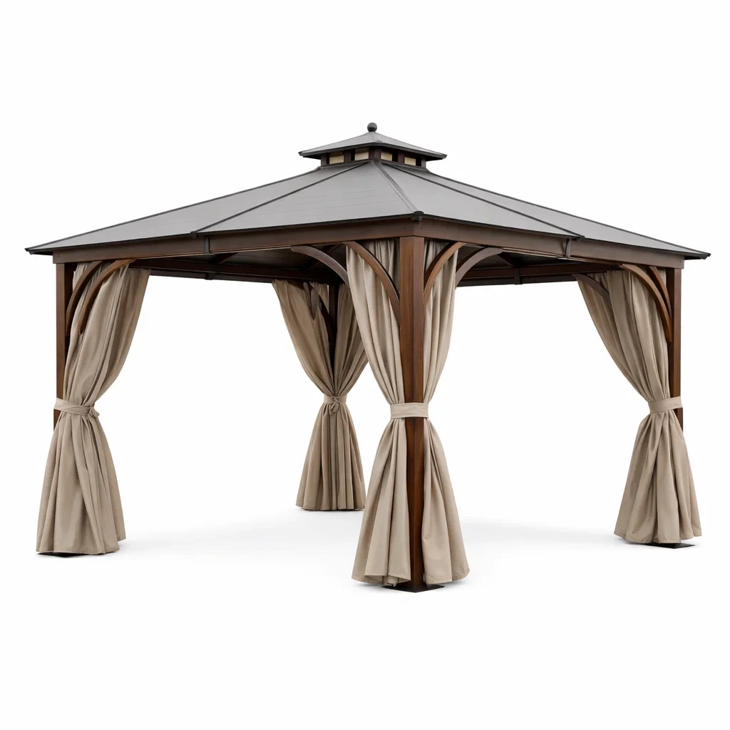 Pavillon de jardin en aluminium avec rideaux en polyester
