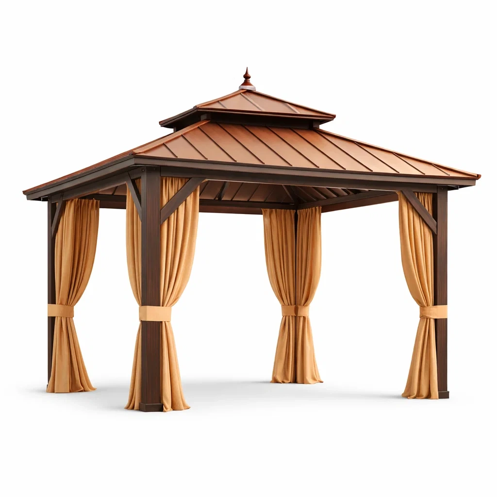 Ce pavillon est conçu avec un cadre en aluminium robuste et un toit en acier résistant. Les rideaux sont fabriqués en polyester pour une durabilité accrue.