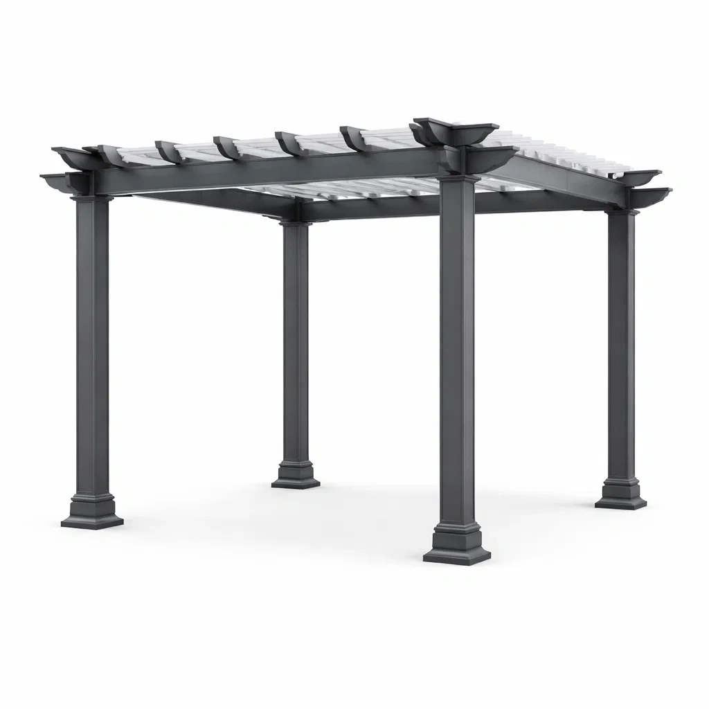 Cette pergola est dotée d'un cadre en aluminium et d'un toit en polycarbonate. Ses dimensions sont les suivantes : longueur de 300 cm, largeur de 300 cm et hauteur de 250 cm. La structure est de couleur anthracite.